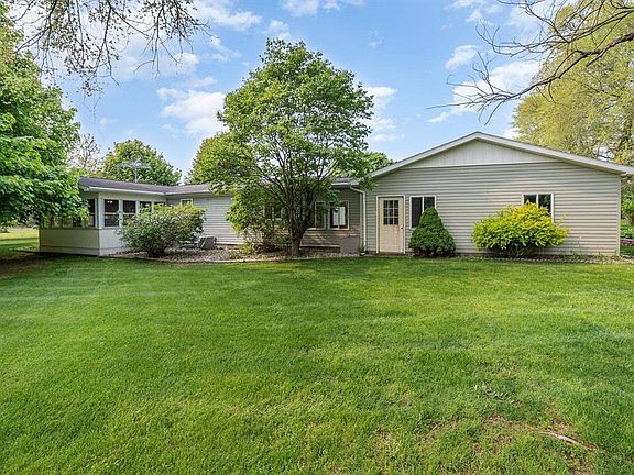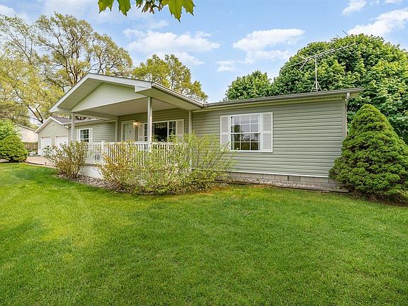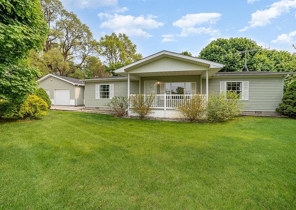 Located on a gorgeous, country acre in the Chippewa Hills School District. The manufactured ranch style home sits on a beautifully landscaped yard filled with perennial plantings. Take the short path to the ''secret garden'' area and enjoy a cup of coffee or a good book while you sit in the small gazebo. A breezeway connects the 2 car garage with openers to the main portion of the home. Spacious kitchen with plenty of cupboards & counter space adjoins the dining room. There is a large sunroom over looking the back yard off the dining area. What a great spot to watch the birds and enjoy nature. Living room is a comfortable space to unwind and has the front door to the covered porch, which adds to the curb appeal. Primary bedroom suite with a walk in closet, bathroom with soaking tub, shower and large vanity space. 2 more bedrooms with walk in closets and another full bath. Laundry room comes with the newer washer and dryer. Bonus items include a sprinkler system to keep the lawn lush and central air!