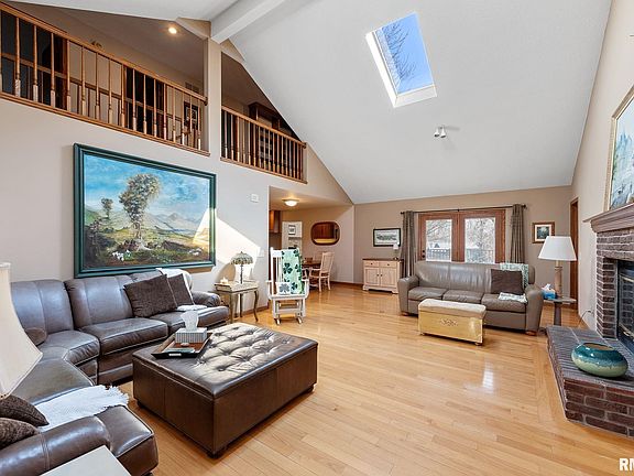 This one owner, almost completely brick 1- 1/2 story home is located in a nicely secluded area of Davenport that few know about. This home features 3 gas fireplaces, main level BR with private bath, vaulted living room ceiling w/skylights, neat loft area overlook and beautiful wood floors. This home has been pre inspected by the seller and is available to the buyer at no cost. New furnace installed in February 2025. Owner states new roof in 2020. What a neat place to have and entertain! The property has over 4 acres and features trees and a "castle" structure for extra storage or just to have fun in! There is also a detached 26x36' building with power and concrete floor great for hobbies or your 69 Camaro SS!
