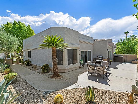 This is IT! Your home search is over! Located in the gated development of Laguna de La Paz, this centrally located pristine community offers a clubhouse, a 5-acre lake with pedal boats and catch and release fishing. Tennis and pickleball courts are ready for your use and 15 pools and spas invite you to take a dip. Work out in the fitness area while you take in the stunning views of the community and area. Lush and colorful landscaping is in abundance while walking paths wind throughout the development. Enjoy the out of doors with a refreshing beverage as you and your friends catch rays on your spacious patio. Fine dining, world-class golf courses, entertainment sites and premier shopping are just minutes away. The famous Indian Wells Tennis Gardens and the new Acrisure Arena are nearby as well as a host of outdoor activity venues. Amenities in the home include an upgraded remodel that boosts tile flooring, granite countertops, a gourmet kitchen with nice appliances and a spacious master retreat with luxurious en suite and extra-large walk-in closet. Patio access is readily available, from a number of rooms, throughout this great home. The study also offers a beautiful Murphy bed that blends into the fabulous decor of that room, plus provides an extra sleeping space. Embrace the relaxing, desert lifestyle in this stunning and inspiring setting while you enjoy the features of this gorgeous yet casual open floor plan home. Offered furnished per seller's Inventory List.