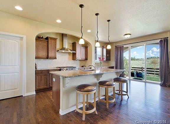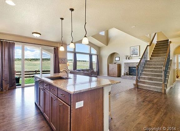 This beautiful Cordera home not only has unbelievable Pikes Peak and Front Range VIEWS that will never be obstructed, it's also in a cul-de-sac and backs a community walking trail. It's one of the more private lots in Cordera and very quiet. Award Winning neighborhood Cordera includes a beautiful Community Center (where YMCA has been contracted to provide operational & facilities management), Gym & Exercise Classes, Swimming Pool, Neighborhood Parks and Hiking Trails. This home has VIEWS!! This extremely well kept KELLER home is like new and is a MUST SEE! Large 13x6 TILED Entry w/ Din Rm off the front with amazing VIEWS of Pikes Peak & Front Range. Beautiful Oak Wood floors throughout Kitchen, Main Level hallways & high traffic areas. GOURMET KITCHEN w/ STAINLESS APPLIANCES including a COMMERCIAL 6 BURNER GAS COOKTOP! Convection Micro & Oven. UPGRADED SLAB GRANITE thru out Kitchen w/ overhang on Island. Beautiful UNDERMOUNT COMPOSITE SINK. Big walk-in Pantry. WROUGHT IRON SPINDLES. Rubbed Oil BRONZE FIXTURES. Main Level Study or Exercise Rm (or could easily be a 5th BR) BASEMENT FINISH IS NEARLY COMPLETE & walls are textured & painted. ELECTRIC TRIM in BASEMENT COMPLETE. ROUGH-INS FOR BATH BASEMENT BATH COMPLETE. Basement Baseboard heat installed. 9' Basement Ceilings. HUGE Mstr BR w/ VIEWS of Pikes Peak & Front Range. LARGE Mstr Bath w/ big walk-in Closet. All secondary Bedrooms are LARGE (2 have amazing views!). Mini Loft upstairs. LOW "E" Windows throughout. A/C ELECTRONIC AIR FILTER Hot Water Recirculates. Mud Rm w/ shelving in fr Garage. RIDICULOUS STORAGE & SHELVING in garage & basement. Custom Iron Window Well Covers. Patio in back is Partially COVERED. Backyard is fenced. TREAT YOURSELF TO VIEW THIS RARE FIND!