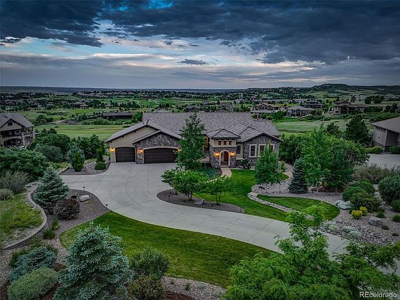 home located in the exclusive Pradera neighborhood in Parker. Perched on a 1.38 acre