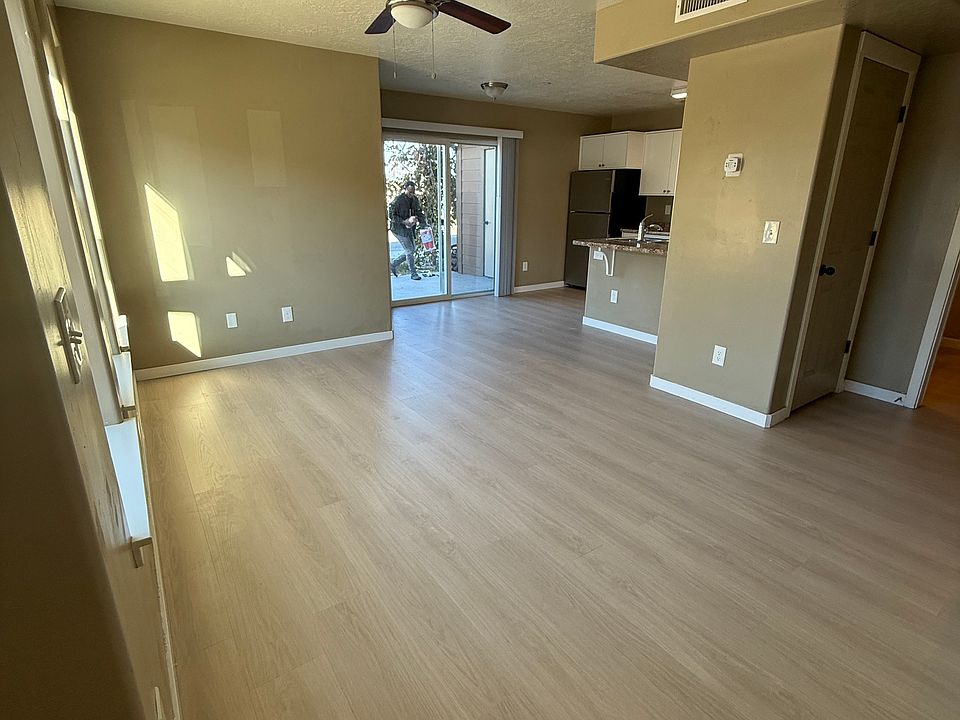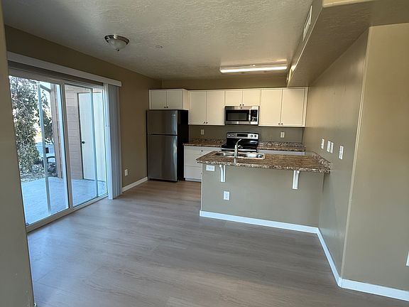 It features 2 bedrooms and 2 bathrooms! The family room and kitchen host an open concept with the kitchen showcasing a breakfast bar and stainless appliances. We are currently installed new luxury vinyl flooring throughout the downstairs. Both bedrooms are located upstairs and have nice closet space. One bathroom is located upstairs and features built in shelves along with a tub/shower combo. Washer/dryer hookups are located in a laundry closet in the downstairs hallway along with a full bathroom. There is a washer and dryer available to stay with the unit. Outside there is a lockable storage unit for belongings and a private patio. No pets allowed and tenant will be responsible to pay for internet, power and gas. Water/sewer will be paid by owner but amount divided amongst all tenants in contract. The security deposit is $2,900. Located close to town with easy access to the I-84 less than 10 minutes away! It is located 1/2 mile from Walmart and has immediate access to shopping, services and more. One year only. No drugs, smoking or vaping. Household income must be 2X the rent. Good credit history.