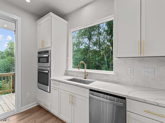 Welcome to the move in ready Shelby, a stunning 2373 sq ft luxury townhome at Tri Pointe Homes' newest community, Elm Park, conveniently located off Duraleigh Road in Raleigh. This exquisite home offers unparalleled convenience, situated just moments away from a world class health care, a variety of shopping centers and an array of fine dining restaurants. The Shelby's thoughtfully designed layout includes a first-floor bedroom with an adjoining full bath, ideal for guests or multi-generational living. The second-floor balcony provides a serene spot to enjoy picturesque views, making it perfect for morning coffee or evening relaxation. Step inside to discover a spacious, open floor plan that seamlessly blends modern elegance with functionality. The gourmet kitchen is a chef's dream, featuring top-of-the-line appliances, sleek countertops, and ample storage space. Adjacent to the kitchen, the large great room is perfect for entertaining, offering plenty of space for gatherings and creating lasting memories. For the remote worker, the Shelby includes a versatile pocket office, providing a quiet and efficient workspace. The oversized primary suite is a true retreat, boasting luxurious finishes and a bathroom designed for ultimate comfort and relaxation. Beyond the community, residents can enjoy the convenience of walking and biking trails at Umstead Park and Crabtree Creek Greenway, located right outside their doorstep. These trails provide a seamless connection to nature, ideal for outdoor enthusiasts and those seeking an active lifestyle. This luxury townhome is adorned with beautifully designed options throughout, showcasing attention to detail and quality craftsmanship. Don't miss the opportunity to purchase the best homesite in the community and experience the perfect blend of luxury and convenience at Elm Park.