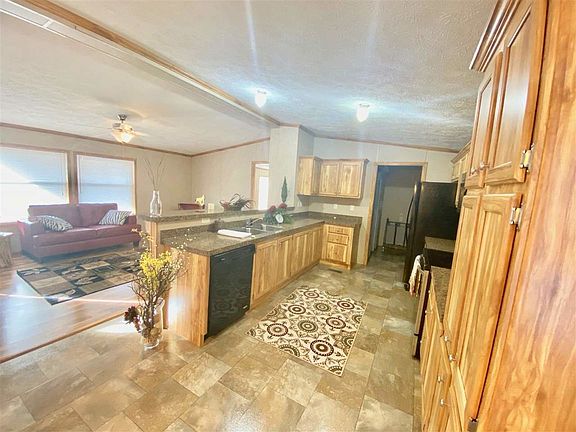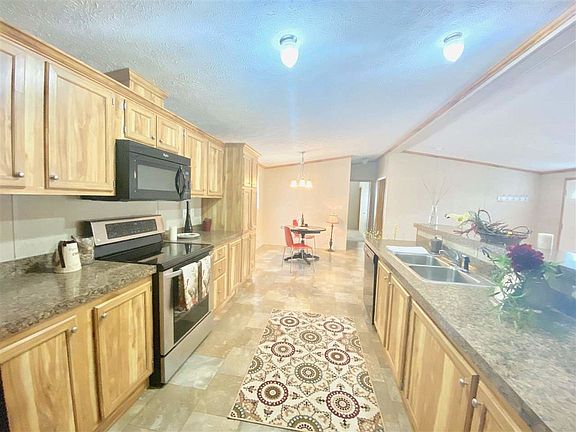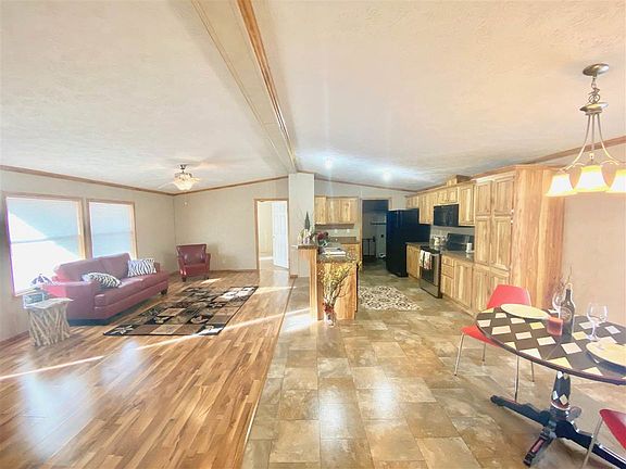 Very well maintained manufactured home with an open concept floor plan with newer flooring. 3 bedrooms, 2 bathrooms, giant shed, large deck with pergola. On an owned lot. The house can be moved. Move in Ready!