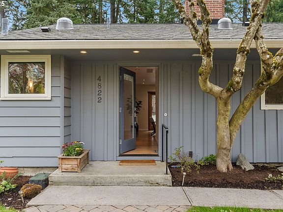Tranquility everywhere in this delightful Brookford midcentury ranch home. Easy living, all on one level. Living room features bespoke cherry mantle, built-in bookcases and custom double wood sliders to large patio. Large dining-family room overlooks gorgeous garden views. Wide galley kitchen with Quartz countertops, large walk-in pantry, breakfast bar, original brick backsplash and upgraded appliances, including Miele dishwasher, Kitchen Aid gas range, Jenn-Air refrigerator and built-in microwave. Updated bathroom includes stone floors, walk-in marble tile shower and marble countertops. Amazing gardens with fresh sod, mature landscaping in fully-fenced in back yard, raised beds, rock wall, automated sprinkler system and stone walkways. New roof in 2020, Velux sun tunnel skylights, Earthquake-retrofitted foundation and more. Bridlemile Elementary, Robert Gray Middle and Ida B. Wells High. HES 4. https://rpt.greenbuildingregistry.com/hes/OR10237401 [Home Energy Score = 4. HES Report at https://rpt.greenbuildingregistry.com/hes/OR10237401]