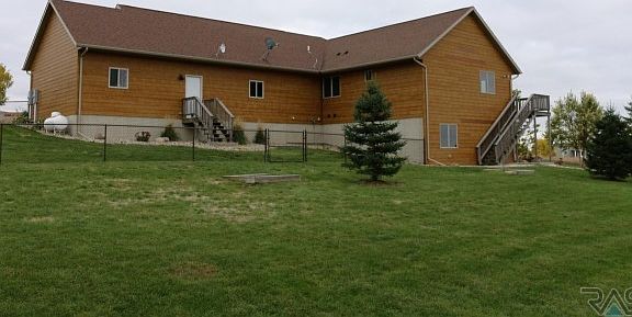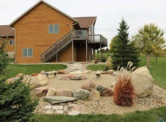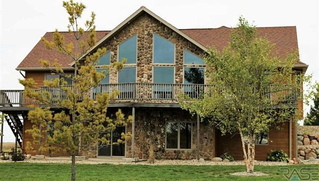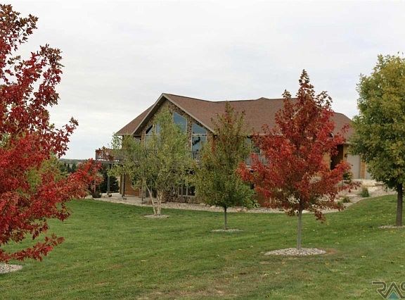 Have you ever dreamed of living in a chalet in a scenic location? This home will live up to your expectations. It is located on one of the highest points in Lincoln County with a million dollar view! The home was designed to capture those views while providing a very comfortable environment to live in. The entire living area is drenched with natural light from the huge windows, vaulted ceilings, and southern exposure. The open floor plan provides the perfect place to entertain family and friends or relax after a busy day near the fireplace. With 4 bedrooms plus an office or exercise room, there is plenty of room. The basement is a walkout with a family room and a media room and lots of storage. There is a triple garage that is finished and insulated along with over 1 acre of land that is covered with very nice trees. It located only 20 minutes from Sioux Falls and yet it feels like you are a world away :-)