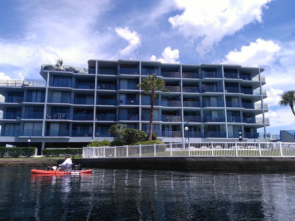 Waterfront Views! This quiet waterfront 1098 sq. ft., 2 bedroom, 2 bath condo offers a large master suite w/ double vanity sinks in the master bath. This condo is in a great scenic location, right next to a Marina for all of your boating needs. Building has an elevator; large pool nested on the riverfront, and assigned parking. This is Florida living at its best! Live your dream now. New heat pump/AC installed 3/27/2018. HOA fee includes building exterior, community pool, flood insurance, ground maintenance, building insurance, basic cable, trash removal, and water/sewer. Pets welcome! You'll love the view and seeing the dolphins while having coffee on the spacious balcony.... Call 813-406-9397 and come see for yourself!