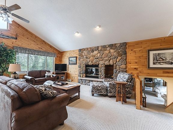 This lake home is quite possibly the one youve been waiting for! Not only does the house boast quality and square footage at 3,100+ sq. ft, it has 4BRs/2Bas, upper and lower lake side decks, an enclosed porch with a hot tub AND fireplace, a wet bar and views galore! Then theres the 1,344 sq ft. garage There are 3 stalls house side, 1 stall coming in from the driveway, and a finished office/bunkroom. The property and lake are the icing on the cake, however, for the 1.5 extensively landscaped acres and 150 of lake frontage on Echo Lake, part of the Sugar Camp Chain, is what will make this The One. Lush greens lawns surround the home and a blacktop golf cart path takes you down to the waters edge and lakeside shed with electric. Come for the weekend but stay for the long haul, this will be in the family for generations!