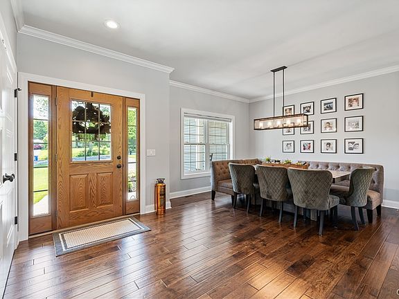 Welcome to 4823 Harris Rd., a well-appointed, custom-built ranch style home set on 2.4 picturesque acres. The professionally designed, open floor plan is an entertainer's dream, featuring durable engineered hardwood floors, a custom kitchen with quartz countertops, a formal dining area and more casual breakfast nook overlooking the wonderfully designed in ground pool area. The living room blends comfort and style with a grand fireplace and decorative display cabinets. The expert craftsmanship and detailed trim add an elegant touch throughout the home. Easily accessible to the main living area is the owner's suite that boasts a spacious walk-in closet with built-ins and a luxurious attached bathroom with heated tile floors. Two additional bedrooms and a full bathroom and laundry area complete the thoughtfully laid out main floor. The finished walkout basement offers even more living space, including a family room, play area, bedroom, full bathroom, kitchenette, and dedicated office. Step outside to enjoy the beautiful inground pool and a large pole barn. Don't miss the opportunity to own this exceptional property that seamlessly blends tranquility with convenience.