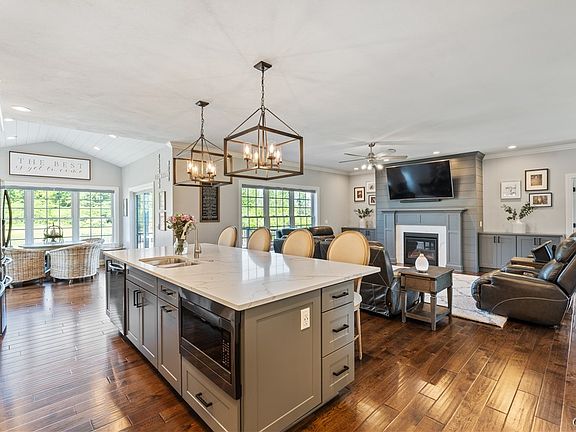 - Wet Bar, Eat-in Kitchen, Home Office, Kitchen Island, Kitchen/Family Room Combo, Living/Dining Room, Pantry, Quartz Counters, Main Level Primary, Primary Suite