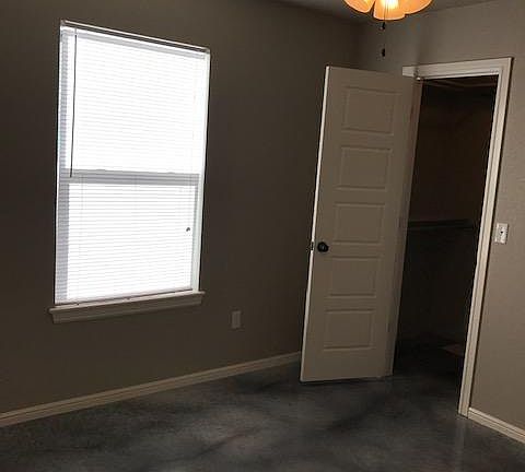 Duplex features 3 bed, 2 bath, stained concrete floors, and storm shelter. Close to schools and shopping. Lawncare included in rent.