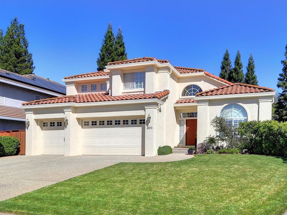 Inviting home located in the Treelake Village community of Granite Bay. The layout will not disappoint with tall ceilings and generously sized rooms. Beautifully updated kitchen features timeless white cabinetry, new quartz countertops with ceramic tile backsplash, a large butcher block topped island, stainless steel appliances and TWO pantries. The kitchen flows into the family room featuring an inviting fireplace and lots of natural light. Sliding doors open to the backyard from the family room, kitchen nook and dining room for the ultimate in indoor/outdoor entertaining. Freshly painted and new carpet throughout. The primary bedroom plus two other bedrooms are located upstairs. Downstairs bedroom/office and full bath. Walking distance to highly sought after Oakhills/Ridgeview Elementary and Granite Bay High School. Nearby nature trail, parks and Granite Bay Golf Club. Welcome home!