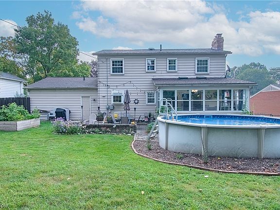 Stunning brick colonial in a charming neighborhood. This 2-story home offers over 1,800 sq. ft. of bright, & spacious living space with many upgrades. A cozy great room invites you in with an abundance of natural light and an airy color palette. The family room features floor-to-ceiling built-in shelving, a wood-burning fireplace, and sliding glass doors to the sunroom that overlooks the peaceful backyard. The fenced-in backyard is great for entertaining family & friends, offering an above-ground pool, and a patio with a firepit. The kitchen offers stainless steel appliances, white cabinets, a tile backsplash, a greenhouse-style window, a built-in coffee bar, and a convenient half bath around the corner. Adjacent to the kitchen is the formal dining room with wainscotting, crown molding, and tall windows. The majestic master suite is located on the second floor and offers a large closet, an abundance of natural light, and a private master bath with a tile walk-in shower. Completing the second floor are 2 generous bedrooms and a full bath with a jetted tub and shower combo. The unfinished basement offers a laundry area with a utility sink and ample storage. Recent updates include new water softener system, new heat/AC unit in sunroom, new dishwasher and fridge, remodeled first-floor half bath, and remodeled master bathroom. Book a showing today!