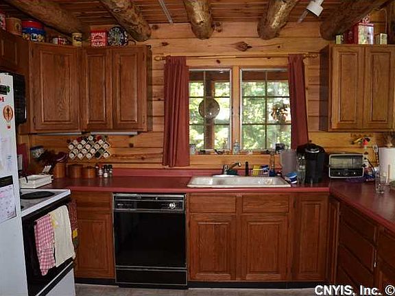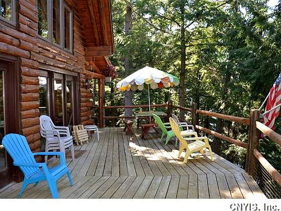 A Lovely Loc-n-Log home nestled in the woods with 95 feet of waterfront on the Rift. This 3 bedroom and 2 full bath home has cathedral ceilings, a master upstairs suite with a large bedroom, bath and a sitting area overlooking the downstairs and a fantastic wrap-around deck. Also a 30' deep water dock. The charm of a log home is unbeatable....especially when it is located in the Beautiful Thousand Islands.