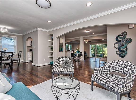 Amazing opportunity in Madison Park. Freshly painted throughout with updated tiled bathrooms. Large living space across the back overlooks expansive & scenic yard of seasonal flowers and fruit trees. Very private. Paver patio to enjoy under the shade tree. Three large bedrooms with deep closets - MB has 2 closets. Laundry closet with storage cabinet & shelves. Newer vinyl windows throughout. Tile floors in kitchen and baths. Features a dining room, living room, great room and flex room for office, etc. Tons of living space! Painted cabinets in kitchen w glass backsplash. Gas stove for the gourmet. Storage shed and a fenced yard. Easy walk to lynx light rail and quick access to I-77. Close to Montford restaurants. Home to be sold in AS-IS condition. Seller knows of no problems but will make no repairs. Ready for your personal touches. High School listed is 2018/2019 school assignment. Current is Harding per Meck County Geo site.