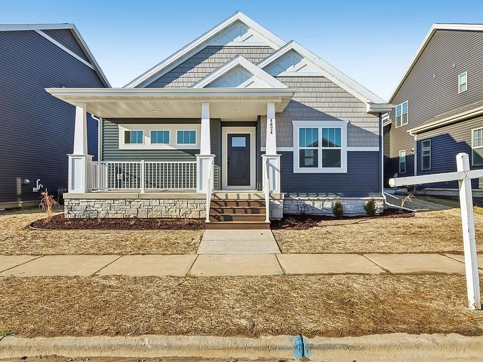 Quartz countertopsCathedral ceilingsLuxury kitchenOversized front porchSoft close cabinetsStainless appliancesLarge walk-in closet