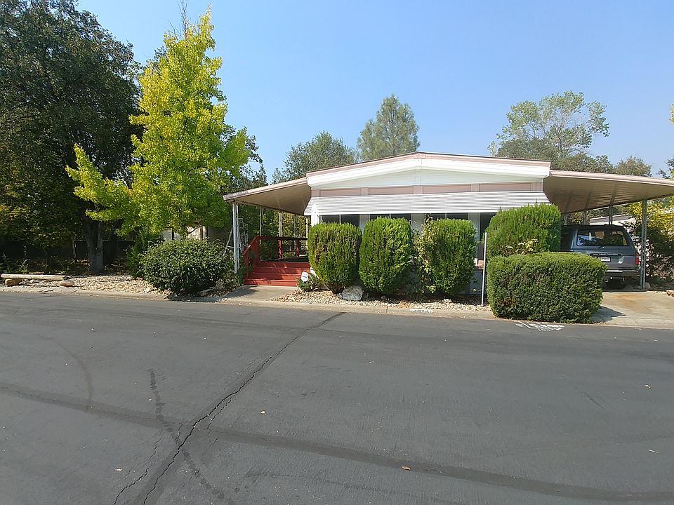 Double wide manufactured home with open lot on one side of it. 55+ senior park. Two car carport. Large deck facing the open lot. There was a kitchen remodel done early this year, and new flooring, cabinets, and counter tops were put in. Large living room. Built in hutch in dining area. This is being sold AS IS. Bedrooms will need flooring and paint.