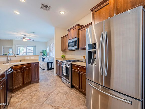 This immaculately maintained 4 bed 2 bath home is found in the heart of the Tuscan-inspired Bella Via. As you enter, you immediately get the sense of home. Game nights in the eat-in kitchen to your right. The smells of food cooking in the pass-through kitchen. Sounds erupting as your team wins the big game in your huge living room straight ahead. The backyard BBQs and laughter under your extend covered patio. The solitude of your split primary suite. And the generous size of the other 3 rooms, perfect for crafts, man caves, offices, and of course...bedrooms!