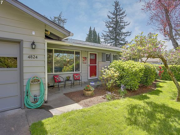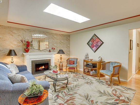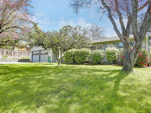 An oasis in the city! This single level home boasts a large fully fenced backyard just blocks from Bridlemile school. You'll find skylights, an eat-in kitchen, separate family/living rooms & indoor laundry. Enjoy covered patios on both the front & back porches and the ability to actually park two cars in the garage and room for storage. New roof 2013, new gas fireplace 2015, new triple pane windows 2011, refinished hardwood floors 2014.