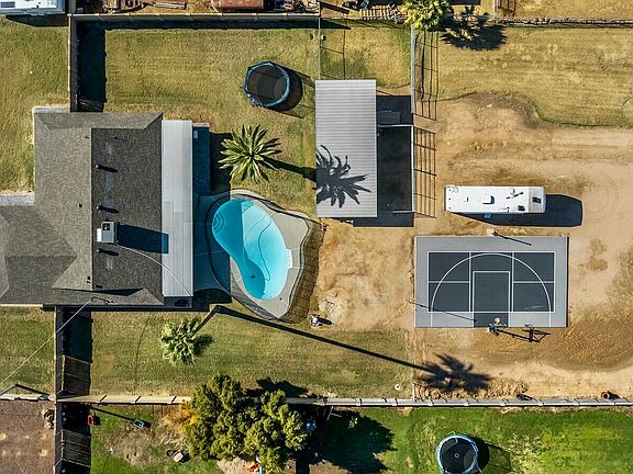 Step outside to your private oasis. The expansive backyard includes a sparkling pool, ideal for cooling off during hot summer days. Sports enthusiasts will love the full-sized sport court which features basketball, volleyball pickleball and tennis. Outside of the sport court, you will find a blank space that would be perfect for parking, building a guest house or turning into additional space for animals. This property offers the perfect blend of luxury and space, making it a rare find in today's market. Don't miss out on the opportunity to own this stunning home!