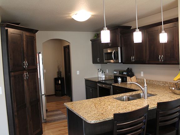 Beautiful 2 story home with entry open to second floor. 3 bedrooms upstairs with laundry room and loft open to entryway below. Spacious master with large WIC and master bathroom with double sinks. 1/2 bath on main level with mudroom and lots of closet space! Kitchen has gorgeous granite counters with alder cabinets. Basement fully finished with extra living area, bedroom, and bathroom that has a luxurious tiled shower and heated floors! Many upgrades include stylish lighting, soft close/full extension drawers, solid 6 panel doors and laminate through out main floor. 3 stall HEATED garage!! Fully landscaped yard, composite decking, stamped concrete, and gas fire-pit!! Call 605-860-0484 for a showing!