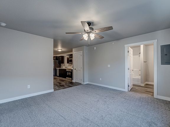 Open concept floorplan with spacious kitchen. Durable stainless steel appliances and washer/dryers in unit. Tub/shower combo to relax in. Located within walking distance from Monument Health, our community provides convenience and comfort. Thoughtfully designed living spaces, including studio, one-bedroom, and two-bedroom units. Durable stainless steel appliances and washer/dryers in all units. Enjoy the fresh air from your own private deck or patio. For those seeking extra storage space and protection for their vehicles, garages are available on-site. Whether you're a busy professional, a young couple, or a small family, our community offers the perfect sanctuary to call home.