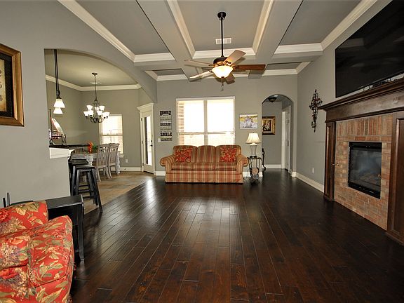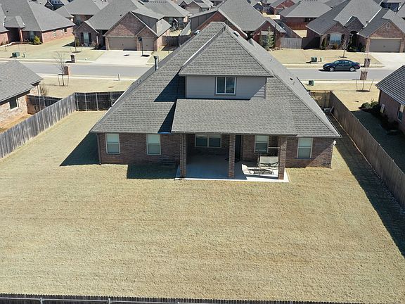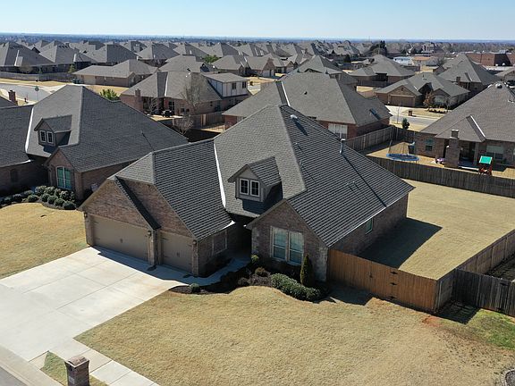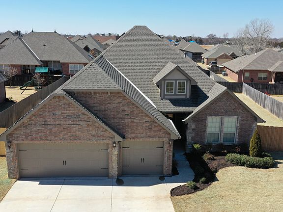 North Edmond. Award winning and highly desired school district. Community swimming pool, jungle gym, stocked pond. This Traditional Style open floor plan offers 2438 sqft of open living with 4 bedrooms, 2.5 bathrooms, large bonus room upstairs, large covered patio, covered porch, 3 car garage with tornado shelter, and tons of storage in the attic. Kitchen has granite counters, breakfast bar, and spacious pantry. Master suite with double vanity, tub, separate walk-in shower and Australian walk-in closet. Wood blinds throughout. Rhiannon tankless water heater. Post tension slab. Six foot privacy fencing, storm doors, sprinkler system, and full gutters.