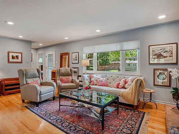 Beautiful five-bedroom ranch in Louisiana Gardens with a gorgeous outdoor space! Full of natural light, the living room is appointed with hardwood floors and a brick-surround fireplace. Showcasing a vaulted trey ceiling, the spacious dining room provides direct access to the immaculate covered patio. At the heart of the home, find the vast kitchen featuring slab granite countertops, sleek granite backsplash, an island with an extra sink, separate cooktop, and ample cabinetry. The master suite is complete with an updated en suite bathroom. Two additional bedrooms and a full bathroom complete the main. The expansive basement features a multi-purpose rec room with a separate office niche. Also downstairs, find a non-conforming bedroom with abundant built-ins, as well as a second non-conforming bedroom. A three-quarter bath, laundry, and storage room round out the basement. Step outdoors to experience an outdoor oasis: the backyard presents a vibrant lawn, lush garden, mature trees, covered patio, lounge area, shed, and more! Take in serene mornings from the incredible front yard, complete with a massive driveway. Additional parking in the attached garage. Great location near Garland Park, Cook Park and Rec Center, Boulevard Shopping Center, and I-25! Quick drive to downtown Denver.