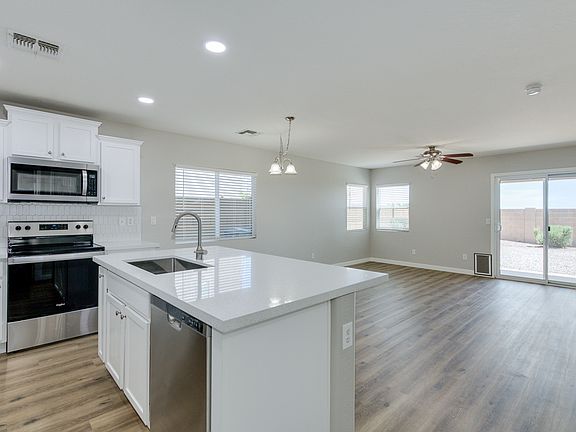 GORGEOUS INSIDE AND OUT! This beautifully updated 4 bedroom 2.5 bathroom home is located in the Copper Basin area of San Tan Valley, AZ. The gorgeous white kitchen offers tons of cabinet/counter space, stainless steel appliances and a breakfast bar. Spacious primary suite on main floor features double vanity, quartz countertop, walk-in tiled shower and large walk-in closet. Additional living space separate from Kitchen/Family Room. Spacious upstairs loft, bath, and 3 additional bedrooms. Low maintenance landscaping in front and backyard. Enjoy backyard privacy with a covered patio. Attached 2-car garage. Beautiful views of agricultural land & desert foothills. Community pool, spa, gym, playground, and parks. *This beautiful home is available for showings and ready for move-in* 12 month lease term, All applicants must pass a background check, $55 non-refundable application fee per adult applicant (18+), One small dog allowed with a $299 refundable pet deposit + $25/mo pet fee, Breed restrictions apply, Max occupancy 2 persons per bedroom per Arizona state law, Tenant is responsible for all utilities and landscape