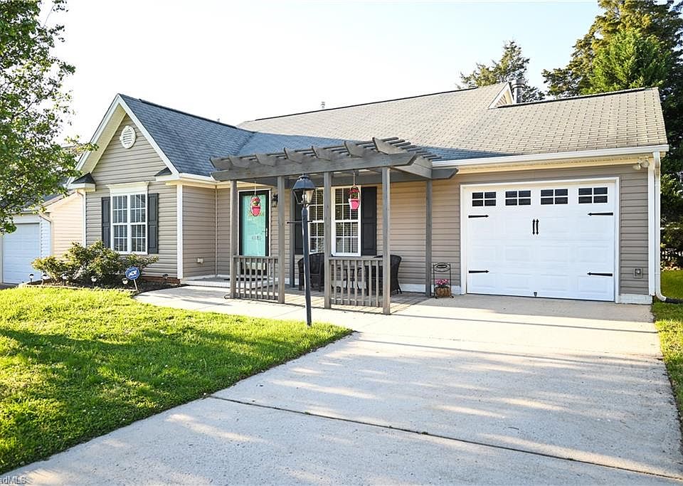 Adorable and affordable one level home in desirable Kernersville location. Living room has vaulted ceilings, gas fireplace. Eat in Kitchen with lots of sunshine. Easy to maintain vinyl siding. Backyard is fenced and has covered patio. Convenient location- close to 421, shopping, dining. Great Schools and close to Salem Park.