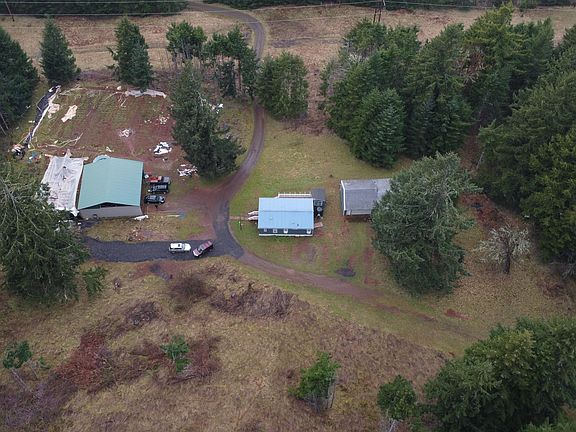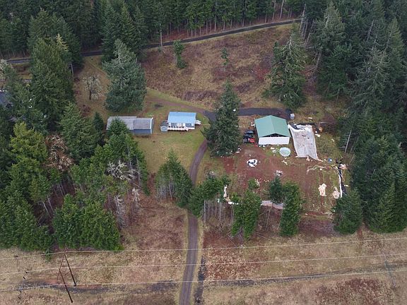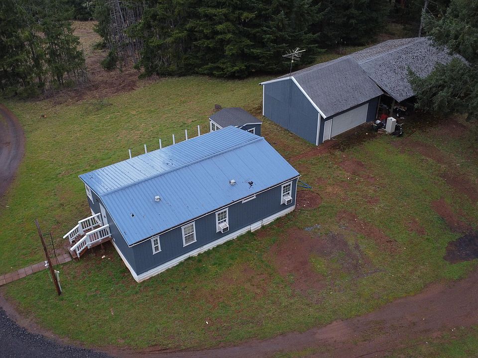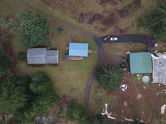 Private & secluded setting on over 5 acres. Property has two tax lots w/electric gate off Goodrich & a north gate, large 45x45 shop w/4 open bays (material left to finish), 25x25 detached w/concrete floors, 25x30 outbuilding, two storage tanks up to 4,000 gallons, RV parking w/water & dump. Home is updated some w/new metal roof, hot water heater & deck. New well installed over 400ft w/2,500 gal holding tank. Could have 3 system water supply on property.