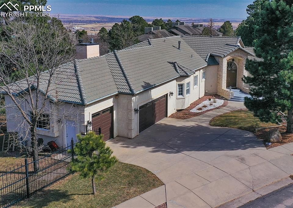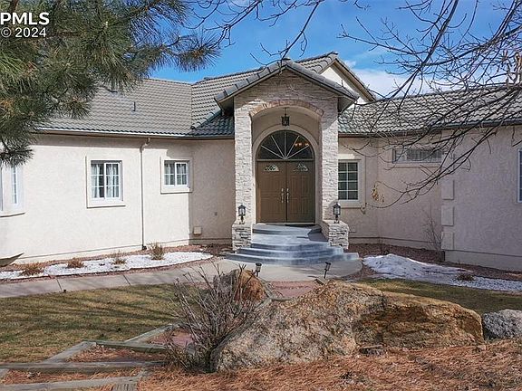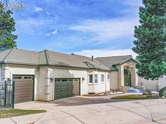Over a 1/2 acre of SECLUDED OASIS in Broadmoor Bluffs. Don't miss this uniquely designed home. Stately ranch home sits on a gorgeous, treed lot with a Spring fed pond & stunning water feature. Main level boasts beautiful hardwood floors. From the grand columns in the formal living room to the beautiful hardwood floors & vaulted ceilings, every aspect of this home exudes luxury. Enter into the Formal living room w/vaulted ceilings & gas fireplace. Walk out to the huge deck that wraps around the formal Dining room w/ paneled wood creating the sophistication of the room and the exquisite painted ceiling. The large & open Floor plan flows from the kitchen & living room. The well-appointed kitchen features solid oak custom cabinetry & a spacious island perfect for preparing meals or enjoying casual dining. Granite counter tops & upgraded appliances make this kitchen a cook's delight. The family can snuggle around the gas fireplace in the living room that has a wall of windows allowing mother nature & natural light flow into the room. The private wing is a retreat w/ office that leads to huge Primary bedroom & a knockout 5-piece bath, wall of closets and a walk out to the patio. Wander downstairs to find 9' ceilings. Entertaining will be a breeze in family room with stacked stone fireplace, wet bar & 2 sliders to step out to patio & gorgeous backyard. Warm & inviting a second office has 2 built in walls of shelving and walk out. Enter into the big 2nd Primary bedroom w walk out & cozy fireplace to keep you warm. Attached is the large ensuite w/ huge soaking tub, walk in shower, bidet & huge walk-in closet. Don't forget to take time to unwind in the built-in cedar steam sauna. 2 more spacious bedrooms with their own attached bathes. This home has it all. 6 baths, 4 Fireplaces, 2 Primary bedrooms, Composite deck, 7 walk out sliders, Pond w/ a fountain, fully fenced in backyard. Huge oversized heated 3 car garage. The craftsmanship & pride of ownership shine in this home.