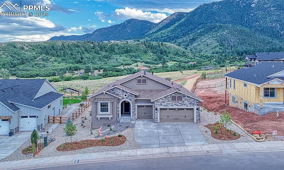 Gorgeous rancher w/ walk out basement backing to open environmental land & national forest in Forest Lakes. No more walk out lots available in this community! Almost 1/3 of an acre featuring unobstructed views of open space, the front range, and miles of hiking trails. Just built a few months ago, this new Paradise floor plan has fantastic curb appeal w/ brand new landscaping, stucco, and stone. Open floor plan features LVP flooring throughout main, high ceilings, upgraded light fixtures, 8 ft sliders to an extended and covered back composite deck, gas fireplace w/ stacked stone and wood mantle, separate formal dining room, upgraded 5 1/4 white baseboards, and loads of natural light. Smart home package included Ring doorbell, Nest thermostat, and Alexa. Phenomenal kitchen featuring quartz counters, soft close wood cabinets w/ crown and modern hardware, tile backsplash, vent hood, gas range, walk in pantry, butlers pantry, and custom pendant lights. Master suite features oversized windows to enjoy the views and attached 5 piece spa bath tile flooring, gorgeous wood cabinets w/ modern hardware, updated light fixtures, quartz counters, huge walk in spa shower, and large walk in closet that connects to laundry/mud room. April Aire purifier system that recirculates fresh air and instant Hot water circulator. Fantastic walk out basement with 9 ft ceilings, gas fireplace w/ stacked stone and wood mantle, surround sound, and large wet bar perfect for entertaining.