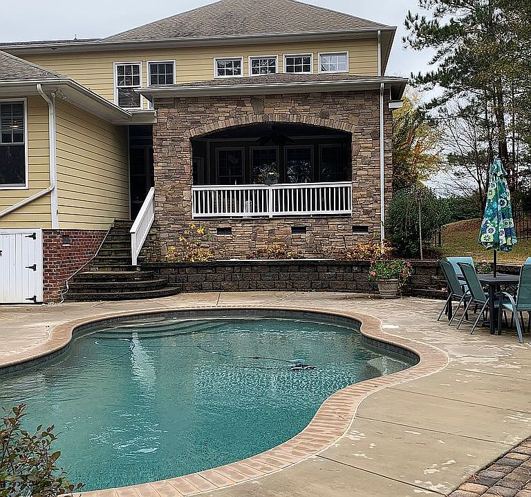 Welcome to your own private resort in the heart of highly sought after Baxter Village. Rocking chair front porch, formal dining room, office w/ french doors, spacious great room with soaring 2 story ceiling, gas fireplace, built in cabinetry. Great room opens to kitchen w/ stainless steel appliances, granite counter tops, tile backsplash, large center island, breakfast area. Mudroom w/ drop zone. Master retreat on main w/ gleaming hardwoods and views of the backyard, bath w/ dual vanities, tiled shower, garden tub, walk-in closet. Upstairs loft area w/ built in cabinets, sink, and wine cooler. Luxurious back porch with stone accents features a gas fireplace - perfect for relaxing or entertaining. The porch steps lead to the backyard oasis w/ an outdoor cooking area- gas grill, ice maker, refrigerator and bar/island for entertaining and dinners by the pool. Pool is heated & features a pebbletec finish. Cozy firepit area, fenced yard w/ zenith zoysia grass. Wonderful Baxter amenities!