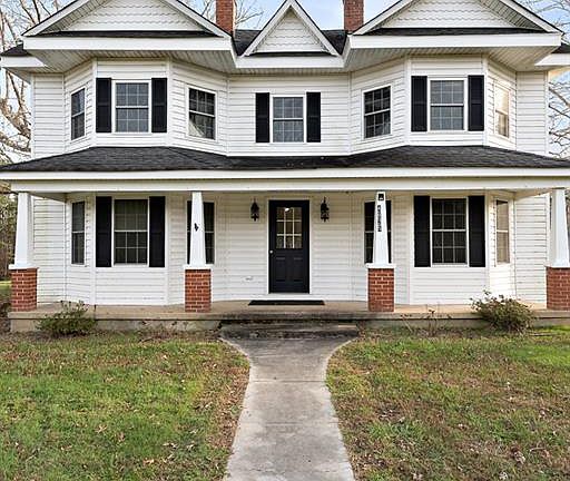 Welcome to this beautiful Country home on your own 2-acre beautiful lot. The architecture style includes the lovely front columns with vinyl siding for low maintenance, bay windows, and cute cutouts inside. Beautiful Full porch with plenty of room and side porch that is covered. Circle driveway for ease of turning around and multiple vehicles parking. First-floor Primary Bedroom with easy access to the kitchen and first-floor bathroom. The kitchen has ample countertop space and is bright with tons of natural light and windows. Gas Burning fireplace for your comfort on colder days. Upstairs holds 3 nice size bedrooms and an additional full bathroom. Laminate and carpet flooring throughout.