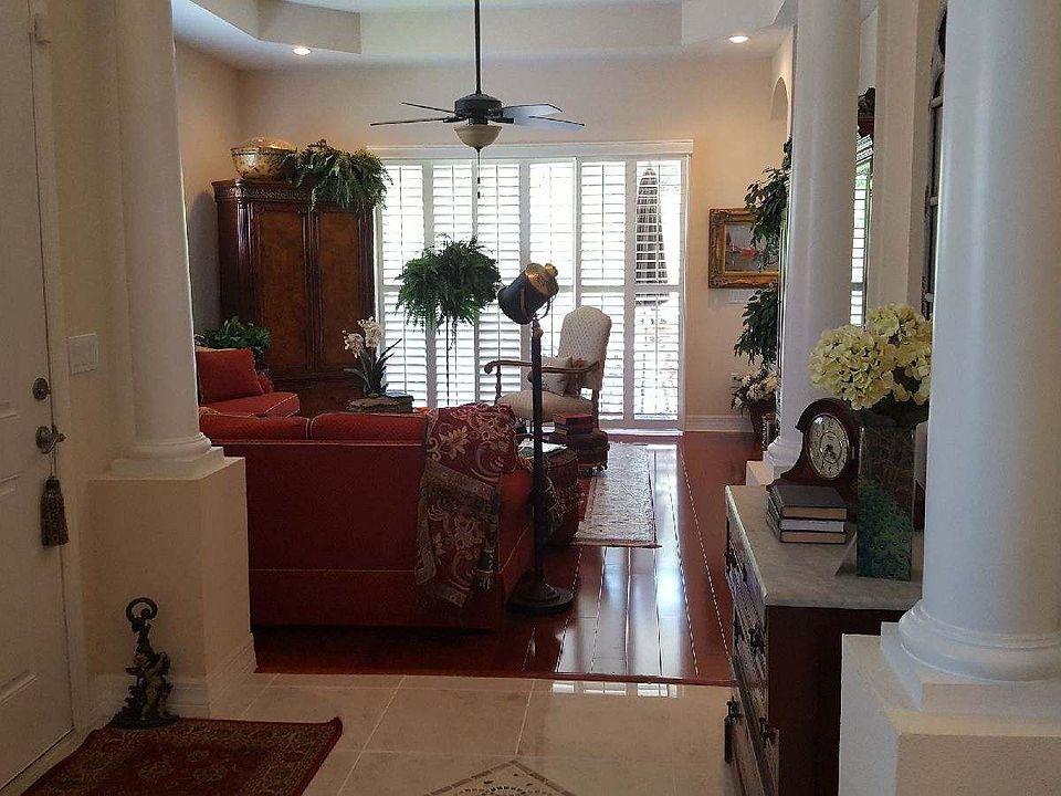 Updated and move-in ready with private beach access! Premium lot location and upgraded well above the ordinary builder-grade material. Featuring Brazilian cherry wood, 15" marble, high ceilings, columned entryway with crown molding, tray ceilings with recessed lighting, arched doorways and plantation shutters. Large master suite offers an oversized shower with floor-to-ceiling tile, solid wood and granite vanity, dual sinks and ample closet space. The updated chef's kitchen is equipped with stainless steel appliances, soft-close 42" wood cabinets, solid stone counter tops and automatic-close drawers. Indoor laundry with utility sink and storage cabinets. The thermal glass sliding doors open to the screened patio overlooking the peaceful preservation. No rear neighbors, just the quiet sanctuary setting provided by this waterfront community. Gulf Harbor Villas is a gated neighborhood offering its residents access to the private Beach Club with white sandy beaches, recreational facilities, boat ramp, and a dock.