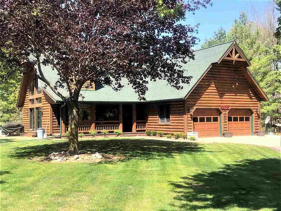 Nestled on 12.21 acres, cust built 3bd 2 bath log home w/open flair, exposed beams, flr to ceiling stone wd burning FP. Kitchen recently remodeled w/white distressed cabs, large center island, granite countertops and SS appls. Newer Pella sliding doors to brick patio/firepit. 1st flr laundry. 2 main flr bedrooms, upper master suite w/den or office area. Open staircase w/exposed window ready for future FR/Bdrm/Bath. New Roof 2017 50ftx70ft OUTBUILDING w/4 horse stalls & tons of storage. The property is extremely well cared 4. Newer electrical fencing. Country or Horse lovers DREAM Property