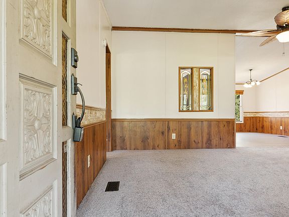 Are you dreaming of a home that is near town with the tranquil charm of a secluded cabin in the woods? Look no further than this breathtaking double-wide home nestled on four picturesque acres. The home has three bedrooms, a thoughtfully designed split floor plan, and two full bathrooms. This residence offers a spacious and comfortable layout enhanced by fresh, new flooring. Step outside to discover a generous full-length front deck, perfect for sipping morning coffee surrounded by nature, and a cozy back deck where you can unwind in the evening air. Both decks are built with durable metal roofing and treated two-by-six lumber, ensuring year-round enjoyment, come rain or shine. For those who enjoy hands-on projects or need extra storage, the workshop is fully wired and insulated, providin