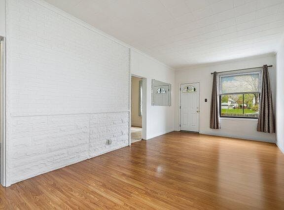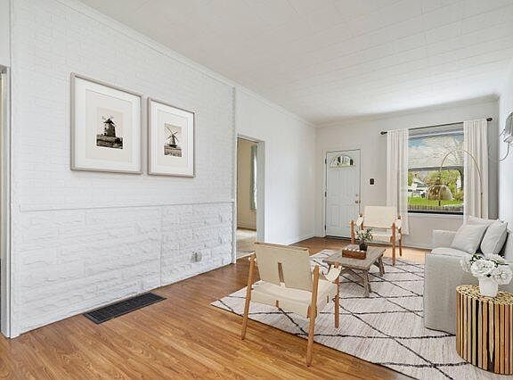 Welcome to a charming home with endless potential, ready for your personal touch. A spacious, fenced front yard creates a warm welcome and leads you inside. The living room offers a cozy space to relax, featuring wood laminate flooring and natural light. Just off the living room, the dining area provides a comfortable setting for everyday meals or entertaining guests. The bright kitchen is perfect for meal prep and offers easy access to a rear mudroom and laundry area for added convenience. Two generously sized bedrooms and a full bathroom complete the interior. Step outside to enjoy a large, fenced backyard with mature trees, ideal for grilling, relaxing, or hosting gatherings. The property also includes a 3 car detached garage with a workshop, providing plenty of room for parking, storage, and hobbies. This home is conveniently located near shopping, dining, schools, parks, and more. Schedule your showing today.