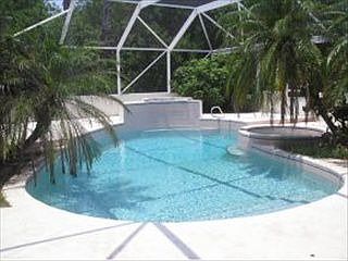 EXECUTIVE SUBDIVISION WITH A COUNTRY ATMOSPHERE YET CONVENIENT TO EVERYTHING. LARGE EXECUTIVE HOMES ON HALF ACRE PRESERVE LOTS WITH LARGE TREES. MAIN HOUSE HAS 4 BEDROOMS & 3 BATHS CABANA HAS ANOTHER BEDROOM AND BATH. LARGE ROOMS, WITH VAULTED CEILINGS,TILE FLOORS, LOTS OF GLASS SLIDERS AND WINDOWS OVER LOOKING LARGE LANAI AND POOL. LARGE MASTER SUITE W/ TWO WALK IN CLOSETS THAT IS LOCATED PRIVATELY AWAY FROM OTHER ROOMS. KITCHEN WITH LARGE ADJOINING FAMILY ROOM WITH FIREPLACE. Newer stainless upscale appliances: LG refrigerator & dishwasher, GE microwave and range. Sliders to the pool from the master bedroom,living room and family room. Home has 2 a.c. units that were replaced in 2005. Outside patio is wired for a summer kitchen.