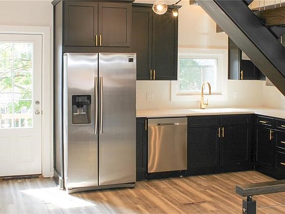 This modern updated home with an open layout pays homage to old world construction with high ceilings and three original fireplaces. The exposed brick fireplace in the living room adds warmth to bright and airy living space. An updated kitchen with lots of room to add a long table for dining. Off the kitchen is a back deck perfect for grilling and enjoying your morning coffee. Upstairs are two spacious bedrooms with a large jack and jill bathroom along with a double vanity! The third floor offers additional bedroom or office space with a private half bath.
