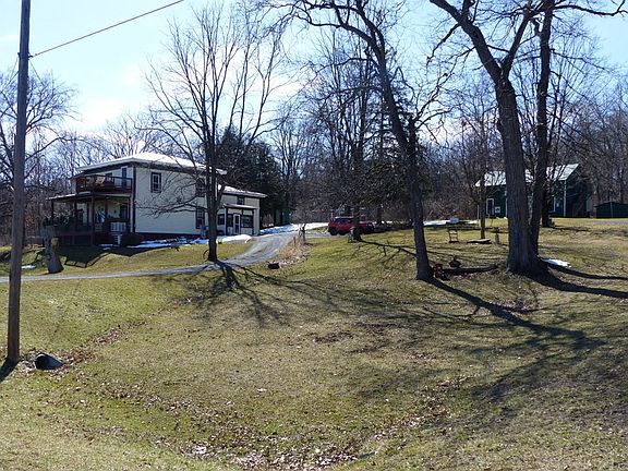 This home has been updated and restored by current owners. Move In Ready. There is an updated kitchen, restored HW flooring, metal roof, vinyl siding, spacious rooms, fine wood accents, pellet insert in the wood burning fireplace in the parlor/second living room,(3) full baths and a second kitchen. Currently used as a single family but easily converted to an in-law apartment or vacation rental unit. Outside there is a spacious shaded lawn, large front porch and second story balcony with beautiful Seneca lake views, gardens,wood working shop/storage barn, a woodtex bldg.,fenced area, Hardwoods
