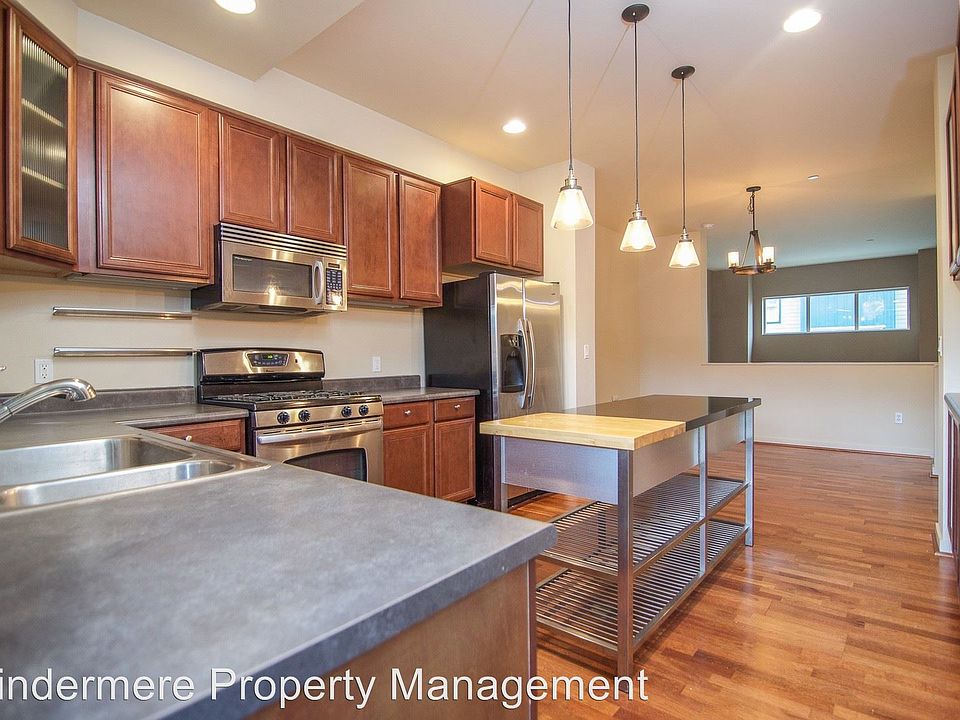 Harbour Point Townhome located at the Camden - An excellent unit in an excellent location! This newer townhouse style condo is located minutes to shopping, bus line and schools. Featuring two good size bedrooms with walk in closets and two and half bathrooms, high ceilings and open floor plan, kitchen with stainless steel appliances and hard wood floors, full size washer and dryer in separate utility room, and a comfortable southerly facing deck for relaxing at the end of the day. There is a separate formal dining area off the kitchen that has very open feel. The unit comes with a full one car garage open to a court yard with a separate entrance. Tenant pays all the utilities. First, last and security deposit due at lease signing. No pets and no smoking. Call Steve 425-750-7310 (RLNE3199155)
