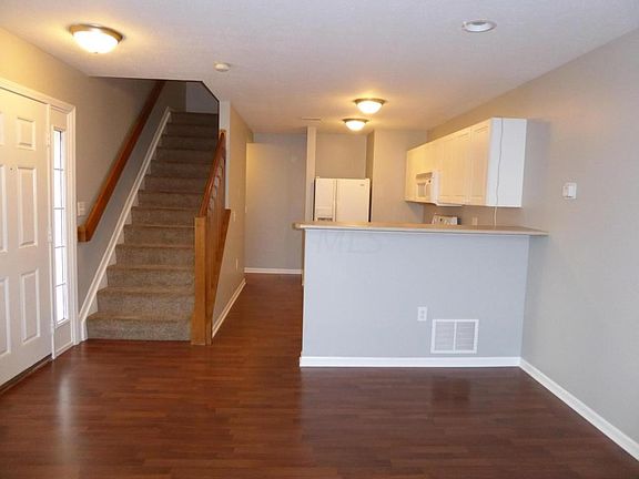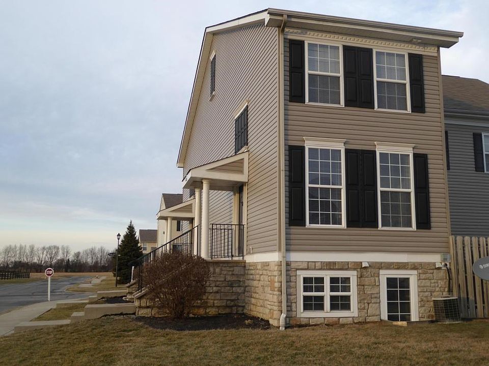 Desirable end-unit condo is move-in-ready with fresh paint! This 1,074 SF, 1-bedroom/1.5 bath unit includes finished basement, and can be used as a bedroom, office, family room, or any living space! All kitchen appliances and the washer/dryer are included, so there's nothing to do besides move in! Monthly condo fee provides the use of the swimming pool, work-out facility, clubhouse, exterior maintenance, lawn care, and snow removal. This unit looks out at the beautiful pond, and you can capture many gorgeous sunsets in your new home! Conveniently located near shopping--off of Gender and S.R. 33.