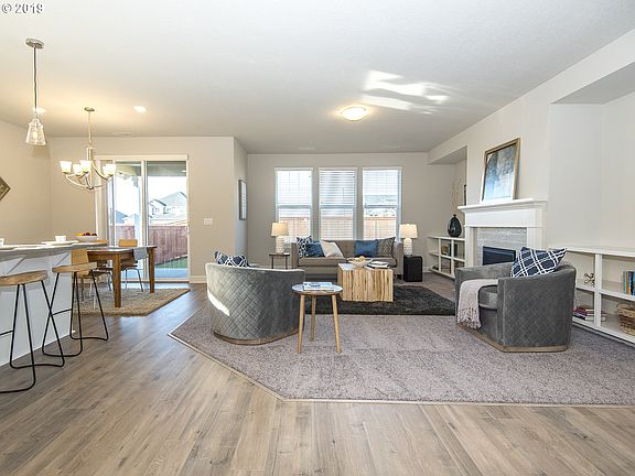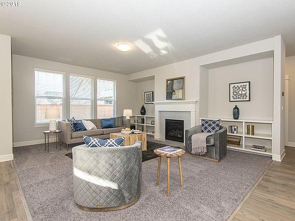 Surrounded by nature trails and greenspace. Just 5 mins to I-5. Sleek Quartz kitchen w/ss GE wall oven, microwave, gas 5 burner cooktop, and island. Laminate flooring in entry, hall, kitchen and dining. Wi-Fi CERTIFIED home design for now dead zones and high speed internet. Echo dot,RING doorbell, keyless entry included in all of these fully automated homes! FRONT YARD MAINTENANCE!