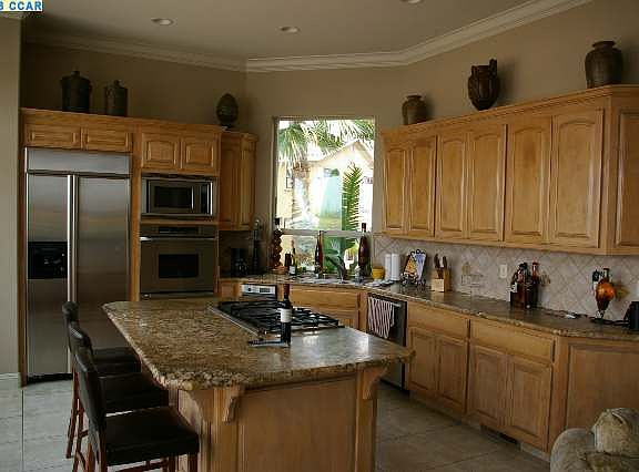 - Features: Counter - Solid Surface, Dishwasher, Eat In Kitchen, Garbage Disposal, Gas Range/Cooktop, Ice Maker Hookup, Island, Microwave, Pantry, Range/Oven Built-in, Refrigerator, Self-Cleaning Oven, Trash Compactor, Updated Kitchen