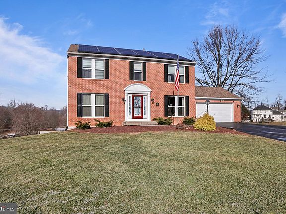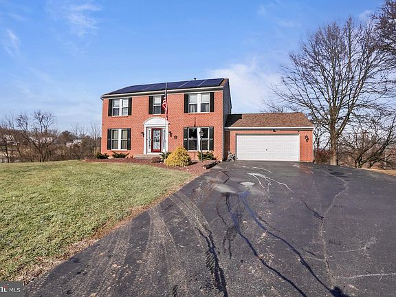 ***SOLAR PANELS provide low utility costs****Beautiful Brick front Colonial set at the end of a cul-de-sac which backs 10 acres of preserved land with pond and can not be built on. Main level features hardwood flooring throughout the Foyer, Formal Dining Room with wainscoting and crown molding, Private Home Office, Family Room with brick wood burning fireplace, and Gourmet Kitchen with granite counter tops, island, stainless appliances, and adjoining Breakfast Room. Upper level includes 4 Bedrooms and 2 Baths including the Primary Owner's Suite with walk in closet and attached luxury bath. Finished Lower Level with Recreation Room, Full Bath, and storage/laundry room with workshop area. Walks out to the rear yard with patio, and screened deck. Large 12x12 storage shed. 2 car front load attached garage, and beautiful landscaping. MARC train station is 7 miles away making this the perfect escape for commuters. Equal distance to Frederick MD and Historic Harpers Ferry offering plenty of dining, shopping, and outdoor activities. Truly a MUST SEE!