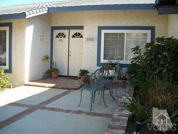 Nestled in the hills of east Simi Valley, this charming single story home is waiting for you! As you pass through the quaint brick ribbon courtyard, surrounded by lush greenery, you reach a beautiful double door entry. Inside you will find vaulted ceilings, wood-like flooring & carpet,& a custom brick fireplace. To keep you cool in the summer each room is equipped w a ceiling fan. The kitchen overlooks the backyard, & boasts a 4 burner gas stove, double oven, stainless steel sink, and white tile countertops. More amenities include: 4 bdrms,1.75 baths, nearly 2000 sq ft of living space, & an 8900 sq ft lot! You will enjoy newer window, doors, & paint thoughtout. The indoor laundry area is extra roomy. 2 bdrms boast mirrored wardrobes. The master bdrm includes a large vanity area, & a beautiful sliding door to the lush backyard. There you will find a covered patio, spa & a spectacular mountain view! There is a grassy area and large side yard as well.