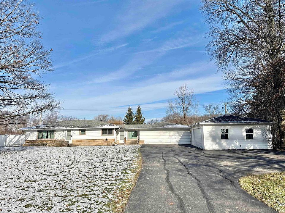 1836 S.F. Ranch Home on 2/3 Acre with no HOA! Many updates including a New Stainless Steel dishwasher and microwave and includes a Gas Range! Eat-in Kitchen. Living Room features a Gas Log Fireplace! Add to that a newer Walk-in Shower in the main bath! Also, included is a White Vinyl Fenced Back Yard! Don't miss this ranch home with 3 Bedrooms (Master is 20 x 11) and 2 Full Baths plus a 24 x 20, Detached 2-Car Garage. In 2016: Newer Well, Newer Roof, Updated HVAC and City Sewer. 11' x 9' Utility Room. Extra Room has ceramic tile and makes a great Mud room. New Softener and Water Heater! All New WINDOWS & Exterior Doors and a new Patio Door. Carpets have just been cleaned and home is Move in Ready!