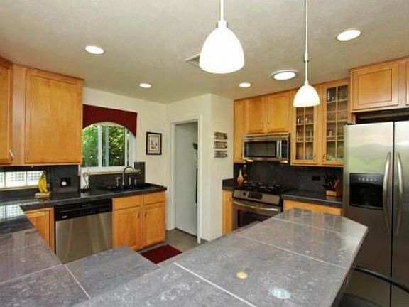 Beautiful ranch style home on the park. Updated 2 baths, 3 bedrooms and remodeled kitchen with stainless steel appliances, maple cabinets and tile countertops. Hardwood floors and newer windows. Oversized two car garage, covered patio, evaporative cooler, sprinkler system and fenced yard. Third bedroom is nonconforming